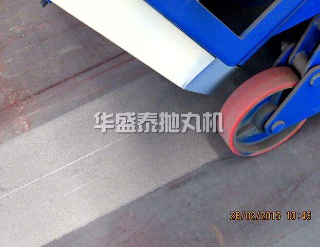 鋼板采用移動式拋丸機(jī)進(jìn)行清理,不受場地限制,成本低,操作簡便靈活,實用性高。