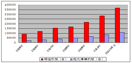 2005-2011年拋丸機(jī)產(chǎn)量情況統(tǒng)計(jì)表