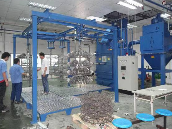 吊鉤式拋丸機的工作原理:當拋丸機開始工作時,是先啟動除塵系統(tǒng)等裝置和部件,然后讓設備主機開始運行。將吊鉤下降來吊起工件并上升到規(guī)定位置上,然后沿軌道進入拋丸清理室進行拋丸清理,此時拋丸清理室大門是關(guān)閉狀態(tài),等到拋丸清理工作結(jié)束后再打開,以便送出處理后的工件。
