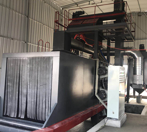 鋼板通過式拋丸機主要有輸送輥道、前后密封室、拋丸室、拋丸器總成、彈丸循環(huán)系統(tǒng)、彈丸清掃系統(tǒng)、除塵系統(tǒng)以及電控系統(tǒng)等組成。