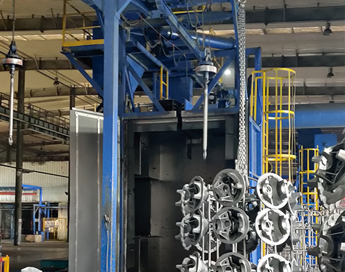 吊鉤式拋丸機(jī)分為單吊鉤和雙吊鉤,吊鉤式拋丸機(jī)由兩個(gè)吊鉤裝載工件交替進(jìn)入拋丸清理室內(nèi)。利用拋丸器將0.2~0.8的彈丸拋向工件的表面,使得工件的表面達(dá)到一定的粗糙度,讓工件變得美觀,或者改變工件的壓應(yīng)力提高壽命。本機(jī)型廣泛應(yīng)用于鑄造、建筑、化工、電機(jī)、機(jī)床等行業(yè)的中、小型鑄、鍛件的表面清理或強(qiáng)化處理。